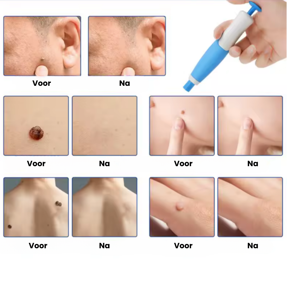 Met TagPen™ klik je een minuscuul elastiekje om het steeltje van het wratje. Dat stopt de bloedtoevoer, waardoor het wratje binnen een paar dagen vanzelf afsterft en loslaat. Zonder pijn. Zonder littekens. Zonder arts.
